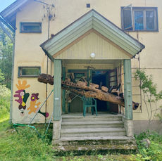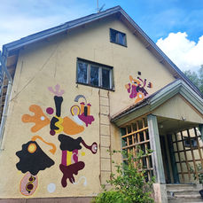 Muraali Keuruun Ekokylän alueella sijaitsevan Rajatalon päätyseinissä, 2025